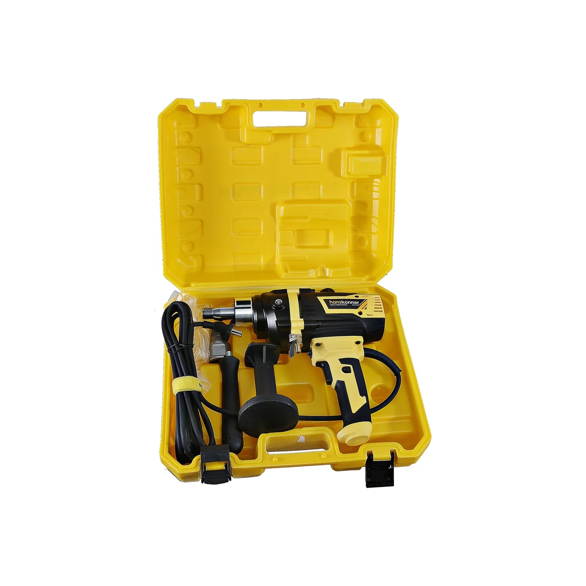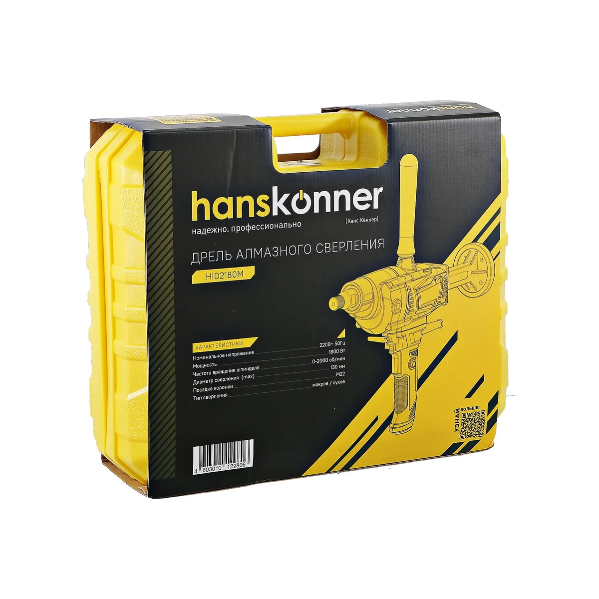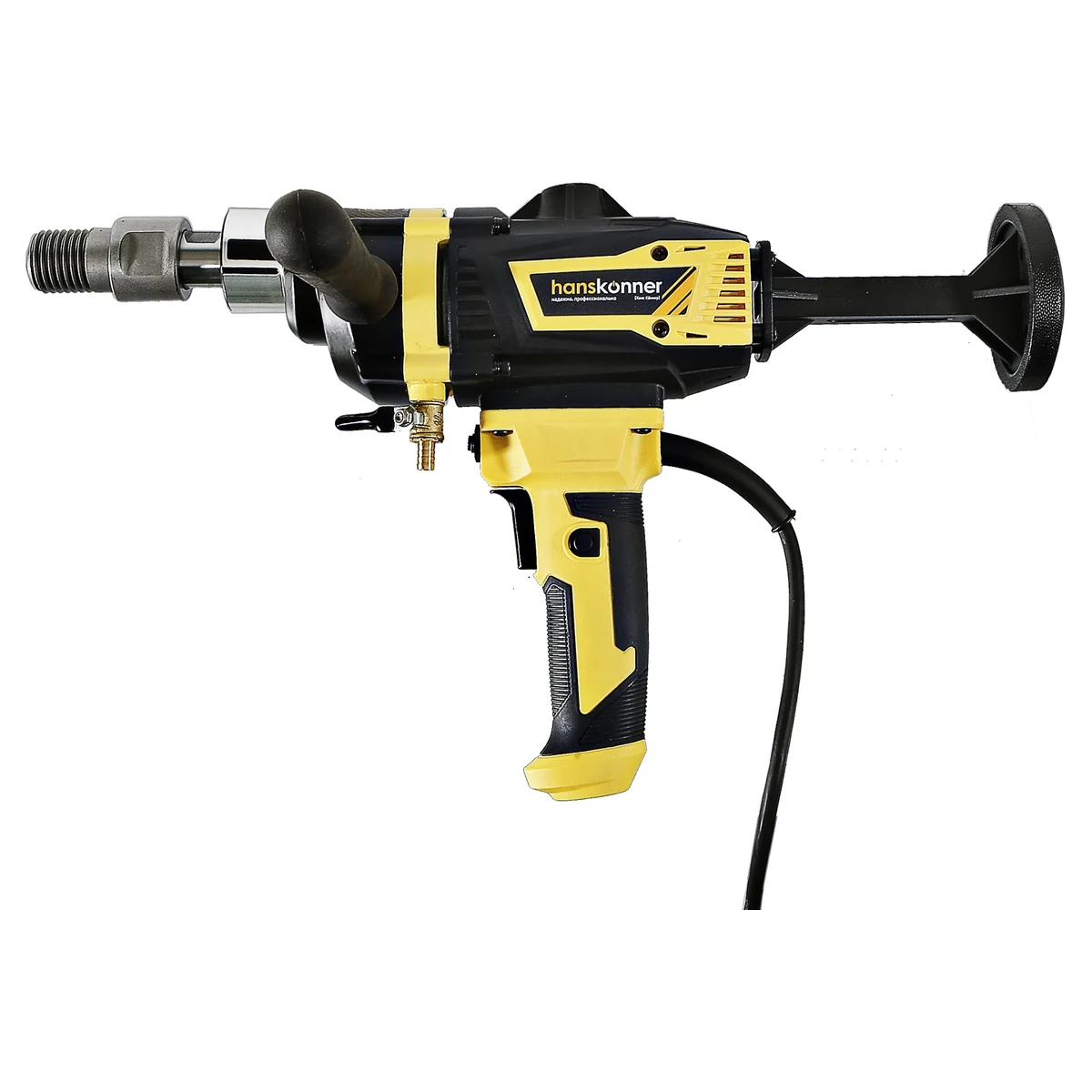 Дрель алмазного сверления Hanskonner HID2180M — компактный и мощный электроинструмент с надежной конструкцией для сверления алмазными коронками отверстий в таких материалах: бетон, железобетон, искусственный и натуральный камень, кирпич. Подключив инструмент к водопроводному крану можно сократить запыленность рабочей зоны, а также износ алмазных коронок и дрели. Данная модель оснащена предохранительной муфтой, срабатывающей при заклинивании коронки, и термозащитой работающей при других видах перегруженности.