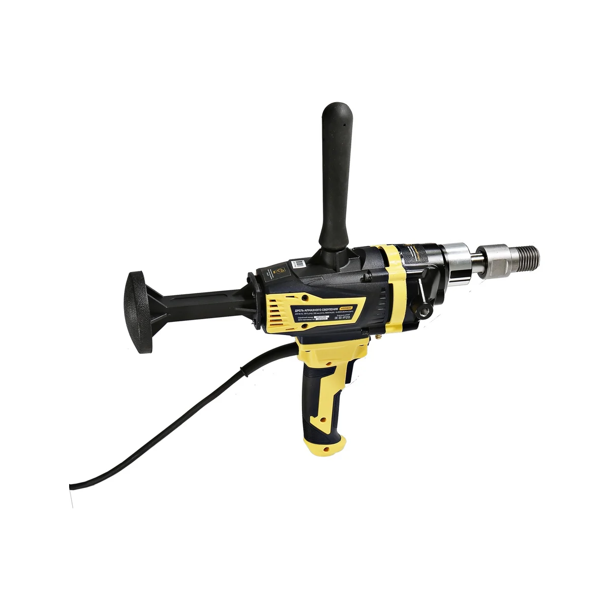 Применение в конструкции фирменных японских подшипников NSK повышенного ресурса способствует исправной и долговечной эксплуатации электроинструмента. Удобству в практическом обращении с дрелью содействует адаптер под алмазные коронки с хвостовиком 1 1/4", идущий в комплекте, фиксатор-липучка расположенный на кабеле и блокировка выключателя во включенном положении при длительных работах. Регулировка частоты вращения осуществляется усилием, приложенным к кнопке включения.