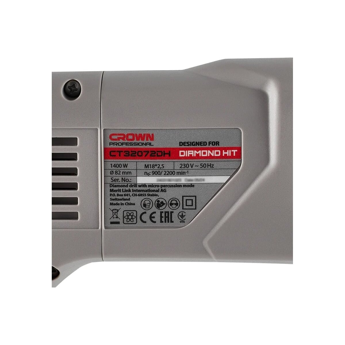 Ручная дрель с микроударом Crown CT32072DH BMC предназначена для сухого алмазного сверления отверстий алмазными коронками в бетоне, железобетоне, камне, кирпиче, натуральном камне и в прочих абразивных материалах во время проведения общестроительных работ, отделочных работ, электромонтажных работ, монтажа сантехники, монтажа вентиляции, установки систем вентиляции и кондиционирования, прокладке труб, при проведении дорожных работ, отбора проб и т.д.