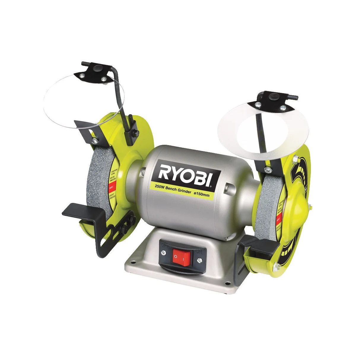 Точило Ryobi RBG6G1 5133004823 служит для заточки инструмента в условиях мастерской. Прозрачные экраны защищают оператора от вылета искр.