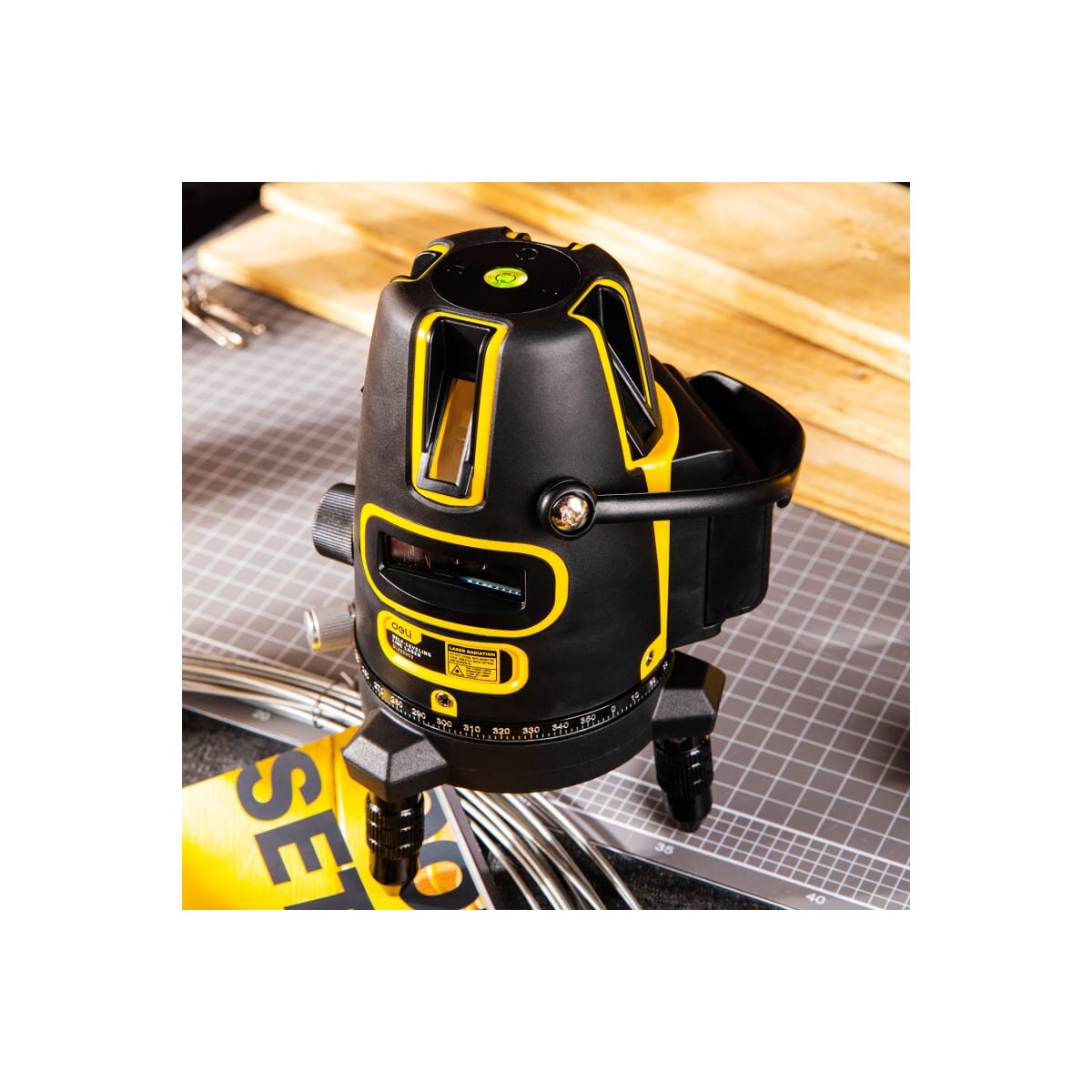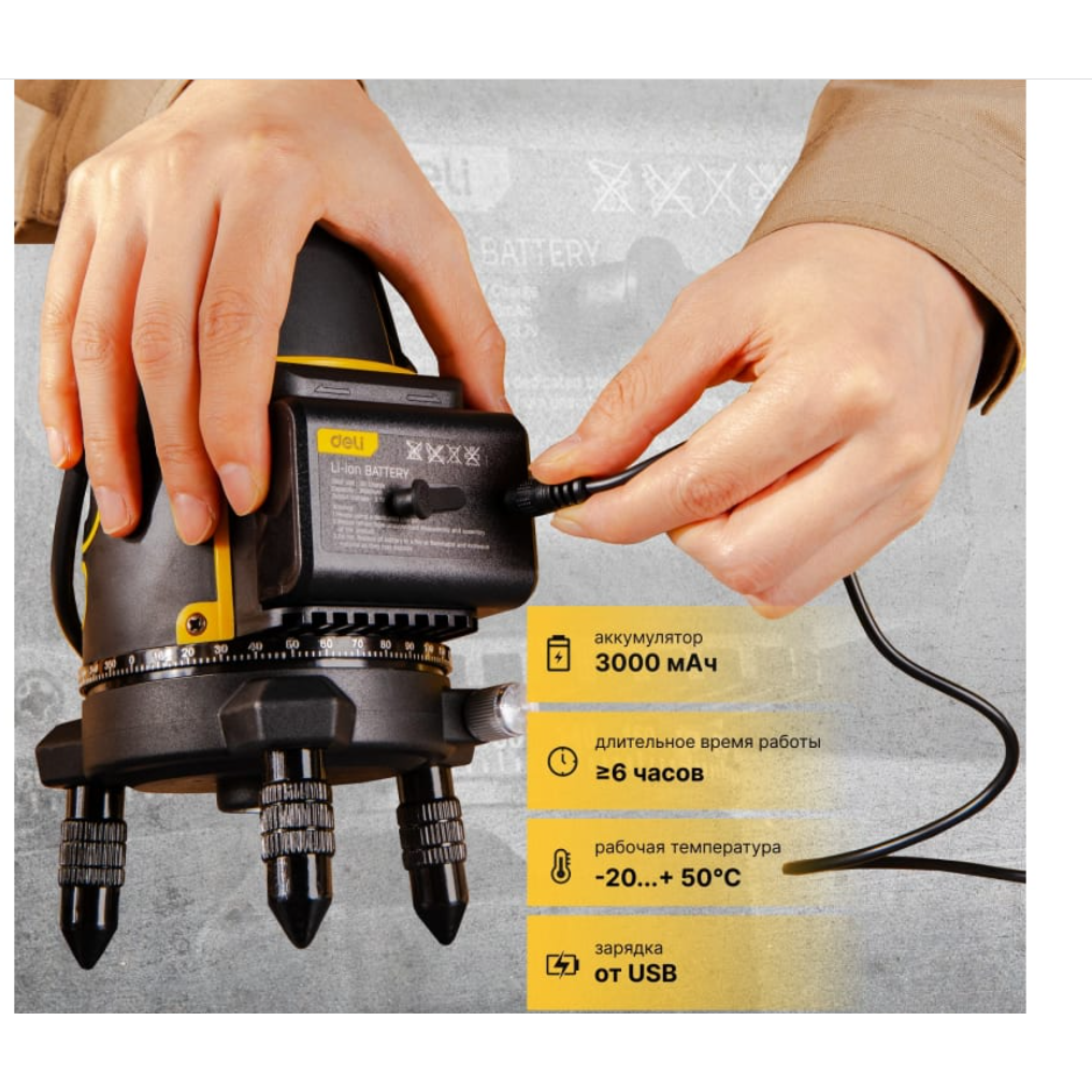 Обладает ярким и хорошо заметным зелёным лучом. Может вращаться на 360° и обладает функцией автоматического выравнивания при наклоне до 3°, а при наклоне более 3° раздаётся звуковой сигнал.