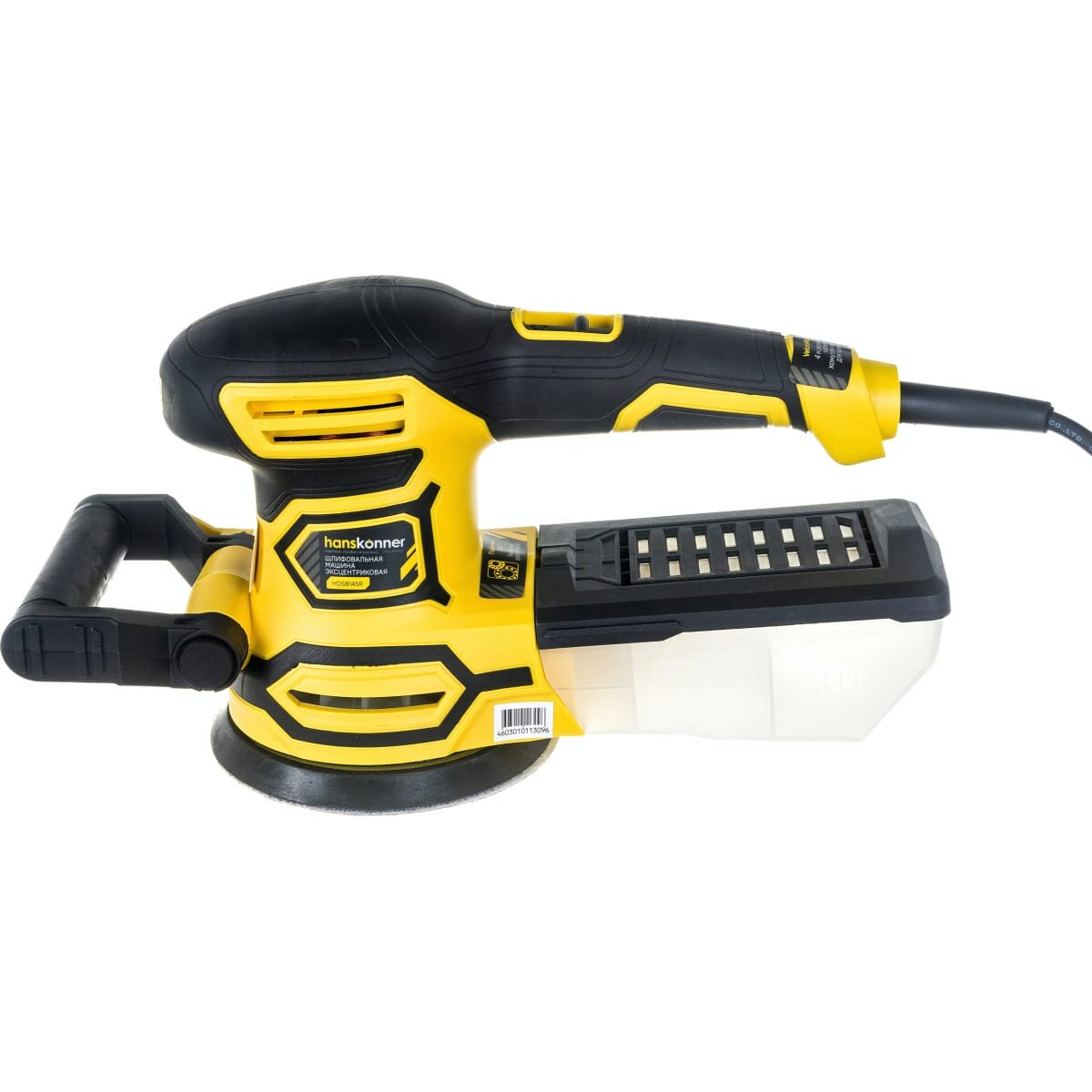 Эксцентриковая шлифовальная машина Hanskonner HOS8145R – модель с высокой производительностью для деликатного шлифования и полирования как ровных, так и выпуклых поверхностей древесины, пластмассы, металла, шпаклёвки и лака.