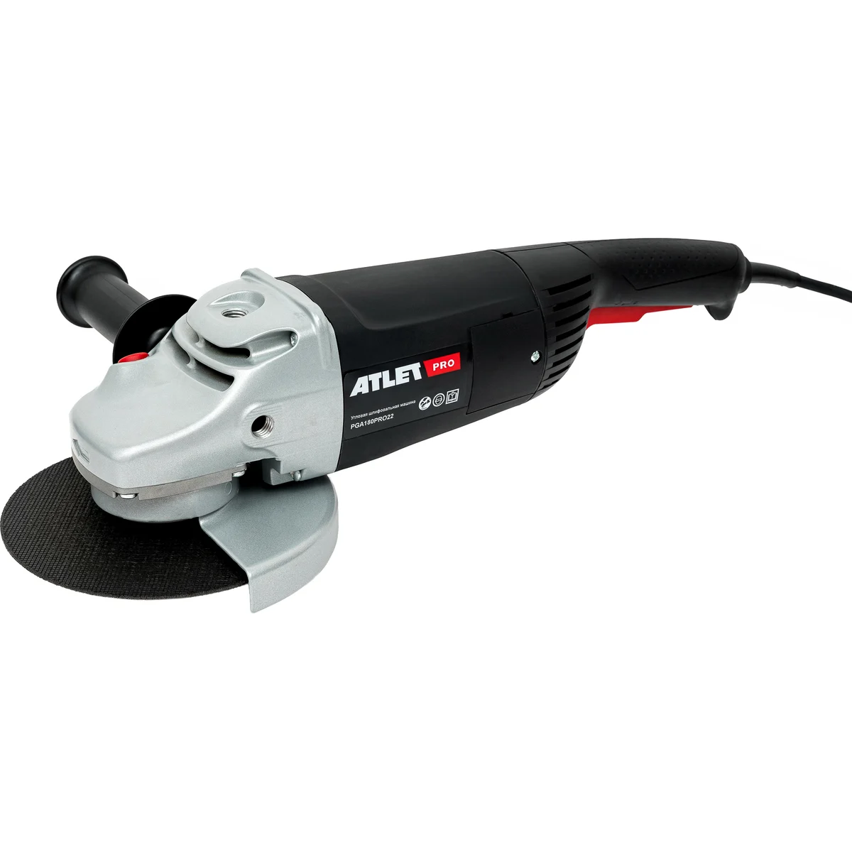 Угловая шлифовальная машина ATLET PRO PGA180PRO22 представляет собой профессиональный инструмент для резки и шлифовки металла, бетона и камня. Модель оснащена мощным щеточным двигателем 2200 Вт, работающим от сети 220-230 В, что обеспечивает высокую производительность при выполнении сложных задач.