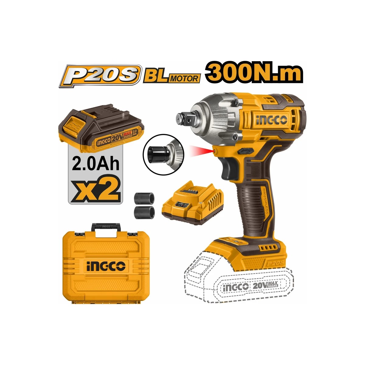 Гайковерт INGCO CIWLI2038 ударный аккумуляторный