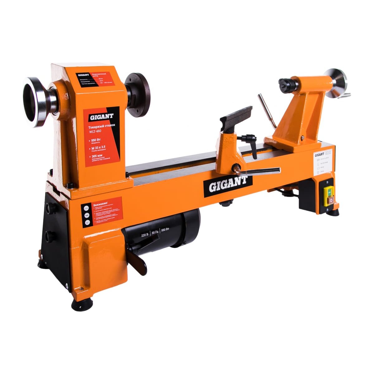 Токарный станок Gigant WLT-460 предназначен для ручной обработки деревянных заготовок. Наличие упора и компактные размеры позволяют быстро настроить рабочее место. Станок при необходимости можно перемещать.