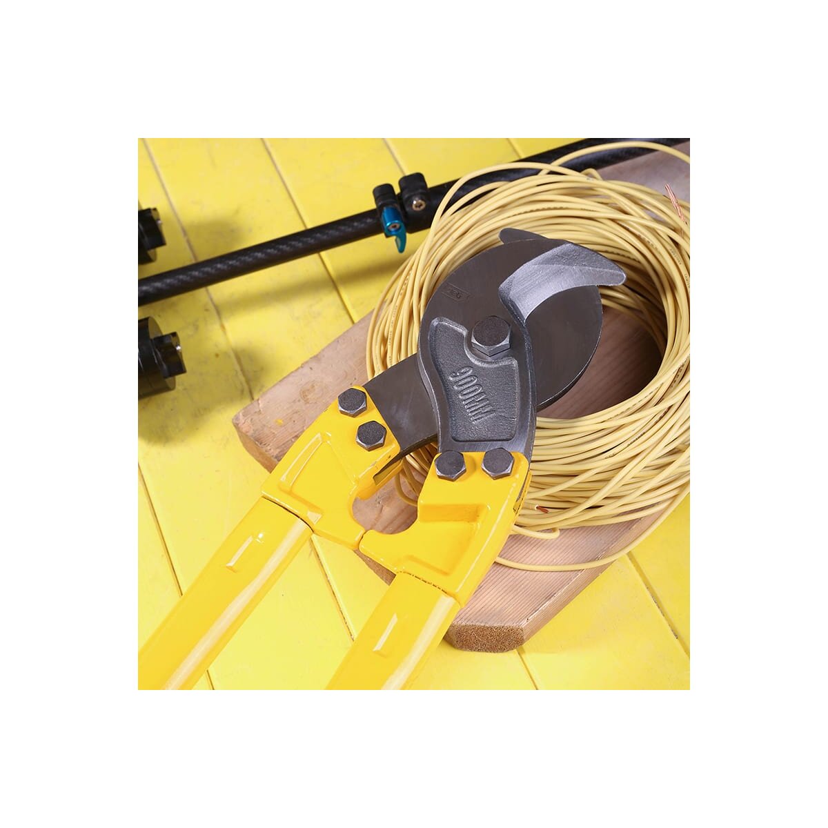 Кабелерез обеспечивает точное и чистое обрезание кабелей без деформации и повреждения. Лезвия изготовлены из высококачественной закаленной стали, что обеспечивает остроту и долговечность режущей кромки и позволяет без труда обрезать кабели диаметром до 500мм²