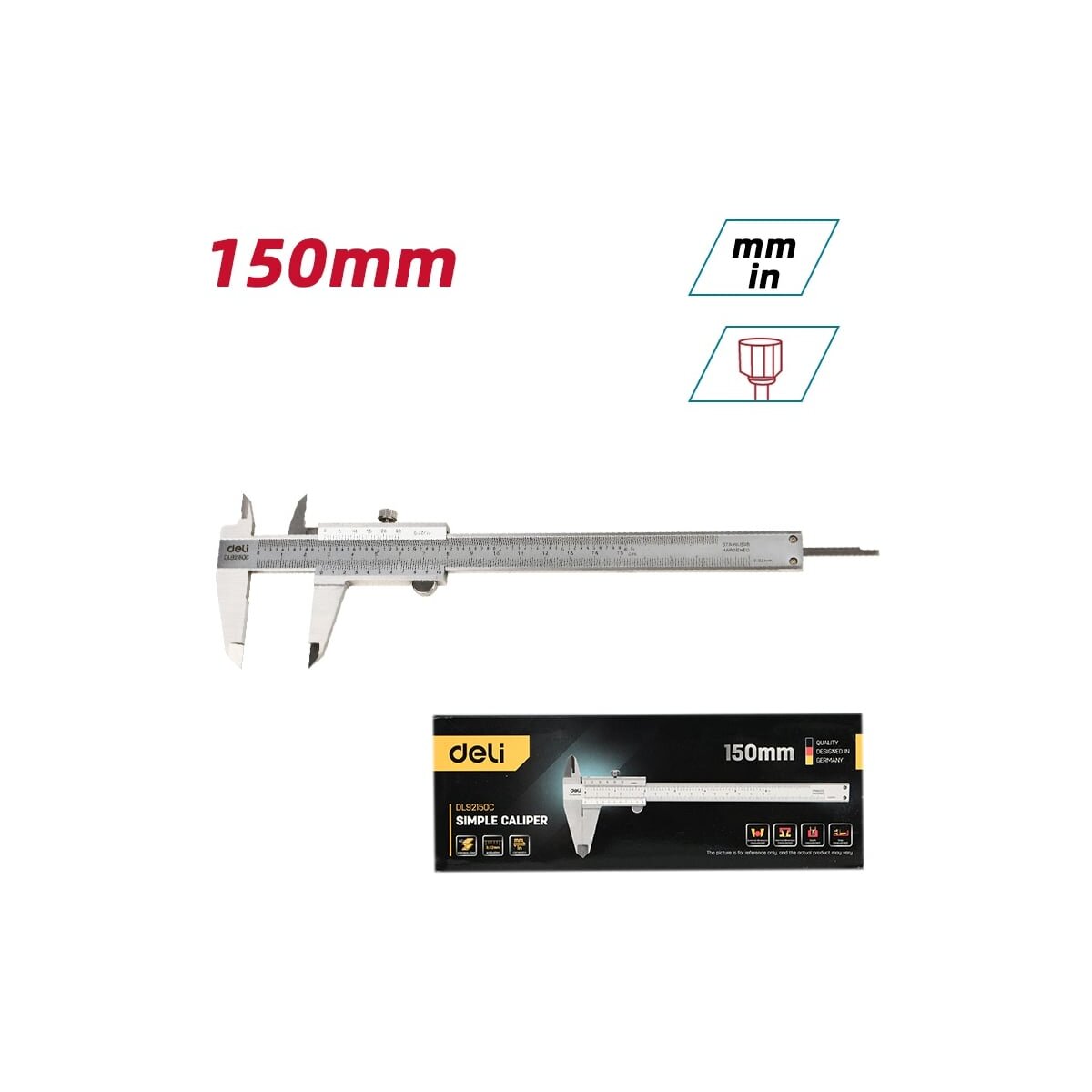 Штангенциркуль Deli DL92150C - это надежный и точный измерительный инструмент, который станет незаменимым помощником в любой мастерской или на производстве.