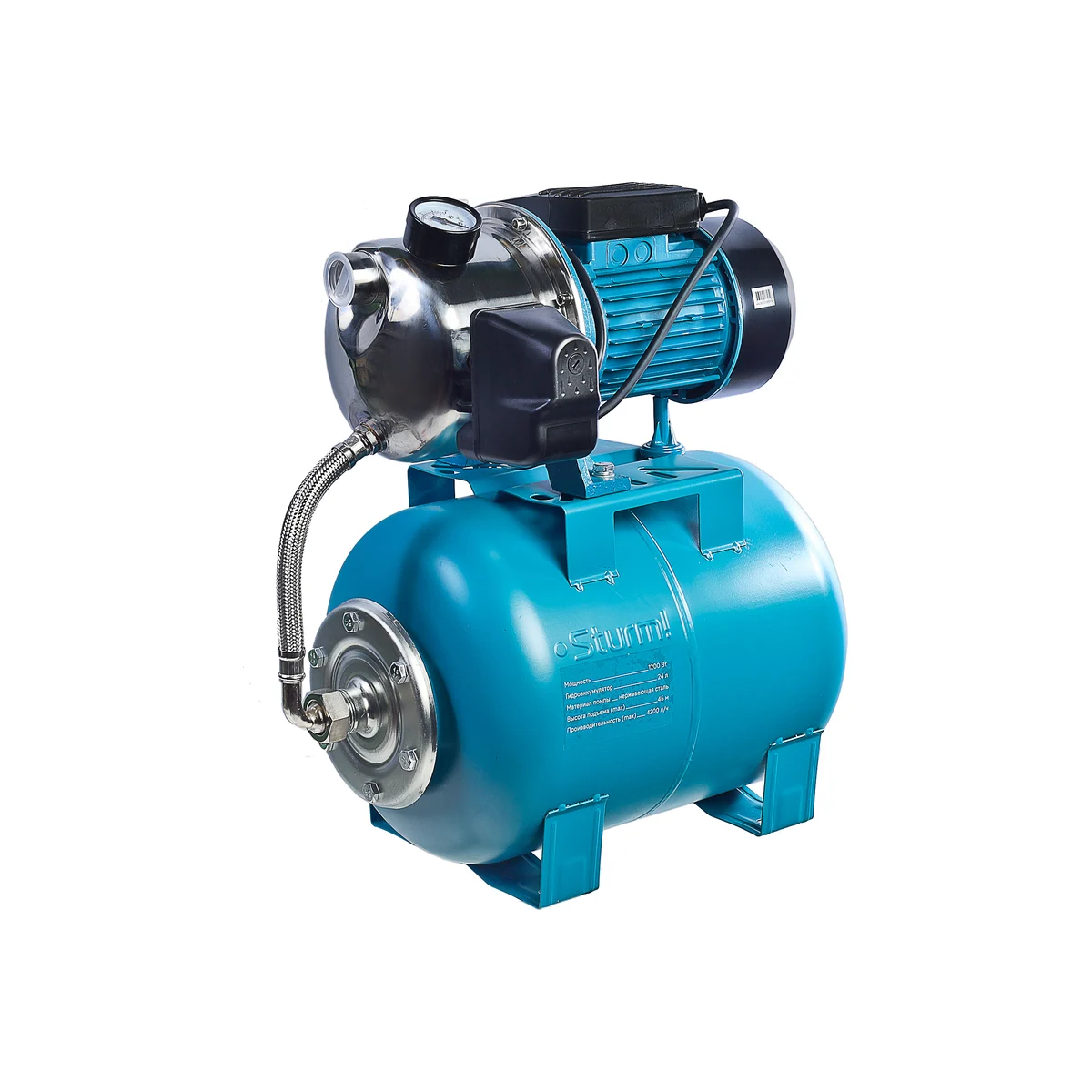 Sturm WP97120ST - автоматическая насосная станция для перекачивания чистой воды, без примесей песка, грязи и других частиц. Предназначена для широкого спектра задач: от перекачки воды из резервуаров и колодцев для снабжения водой небольших помещений. Характеризуется низким уровнем шума при работе, что позволяет использовать насосную станцию как вблизи, так и непосредственно в жилой зоне. Установленный мощный 1200-ваттный двигатель с встроенной защитой от перегрева, обеспечивает высокую производительность в 70 л/мин и максимальный напор 45метров, кроме того, позволяет осуществлять забор воды с глубины до 8 метров. Максимальная температура воды для насосной станции Sturm WP97120ST не должна превышать 35 градусов. Модель оснащена мощным самовсасывающим насосом, вместительным 24-литровым баком гидроаккумулятора, надежным механическим реле давления SK-9 для поддержания заданного уровня давления в водопроводе, манометром и пятиходовым латунным штуцером для подключения к насосу реле давления, манометра и выходных шлангов. Корпус насосной части изготовлен из нержавеющей стали, Крыльчатка насоса выполнена из антифрикционного полимера PPO, стойкого к воздействию агрессивной среды, что способствует долговечности работы насосной части. Модель поставляется в полностью собранном виде - для ввода в эксплуатацию, пользователю достаточно подключить станцию к системе водоснабжения. Назначение: для перекачивания чистой воды без химических и механических примесей.