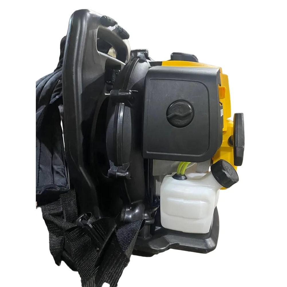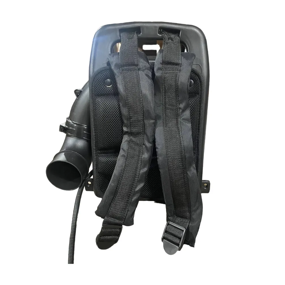 Профессиональная антивибрационная система, двигатель с мощностью 2150 Вт, есть транспортировочная ручка, ранцевая система