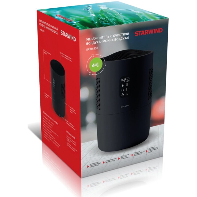 Дышите чистым и увлажненным воздухом круглый год с помощью мойки воздуха STARWIND! В современном мире чистый воздух становится роскошью – транспорт, промышленность, активное строительство и расширение мегаполисов негативно влияют на состояние экологии городов и стран. Для снижения содержания количества загрязняющих компонентов в воздухе важно создавать и поддерживать оптимальную влажность воздуха 40-60% и производить постоянную очистку воздуха.