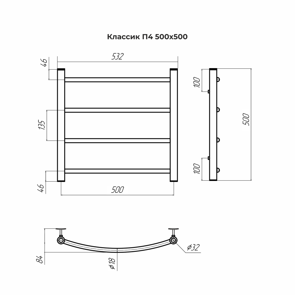 —Водяной полотенцесушитель Terminus Классик П4 500х500
