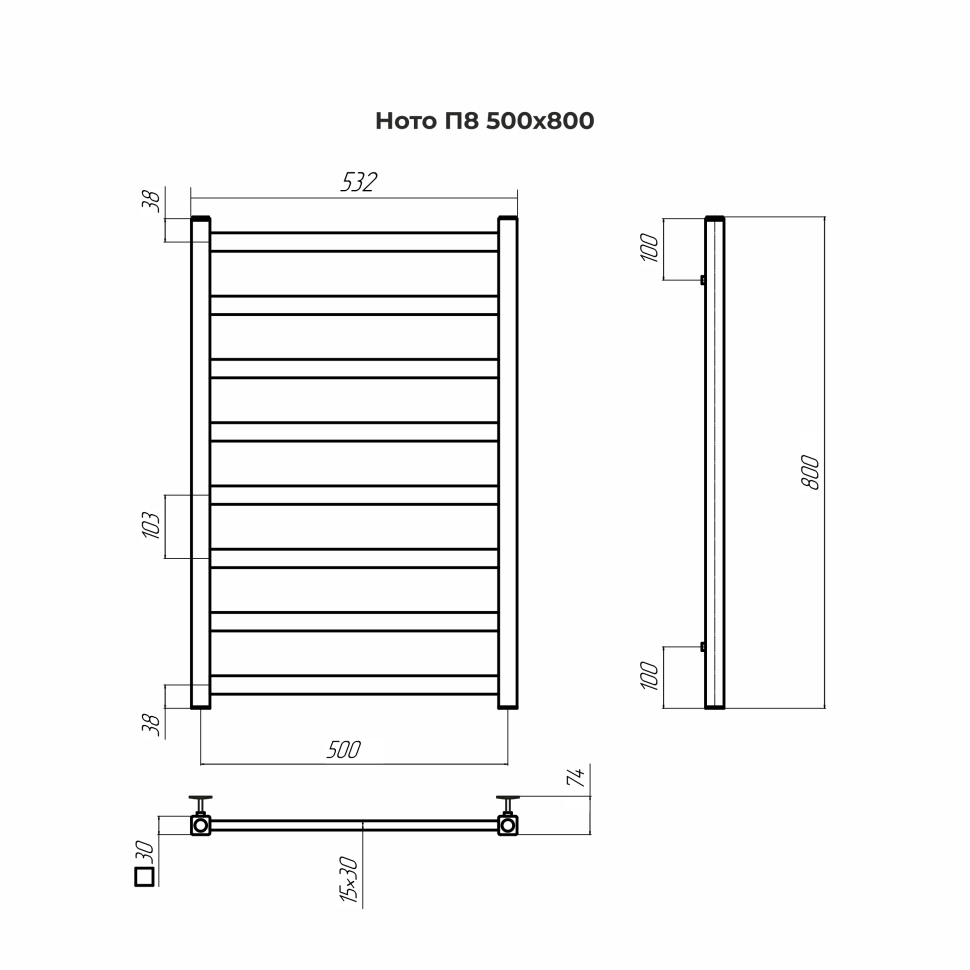 Модель «Ното» ‒ стильное и ультрамодное решение для вашей ванной в современном стиле хай-тек, который сложно представить без высокотехнологичных форм и строгих линий. За счет прямоугольных перекладин она обладает повышенной теплоотдачей и способствует созданию приятного микроклимата в помещении.