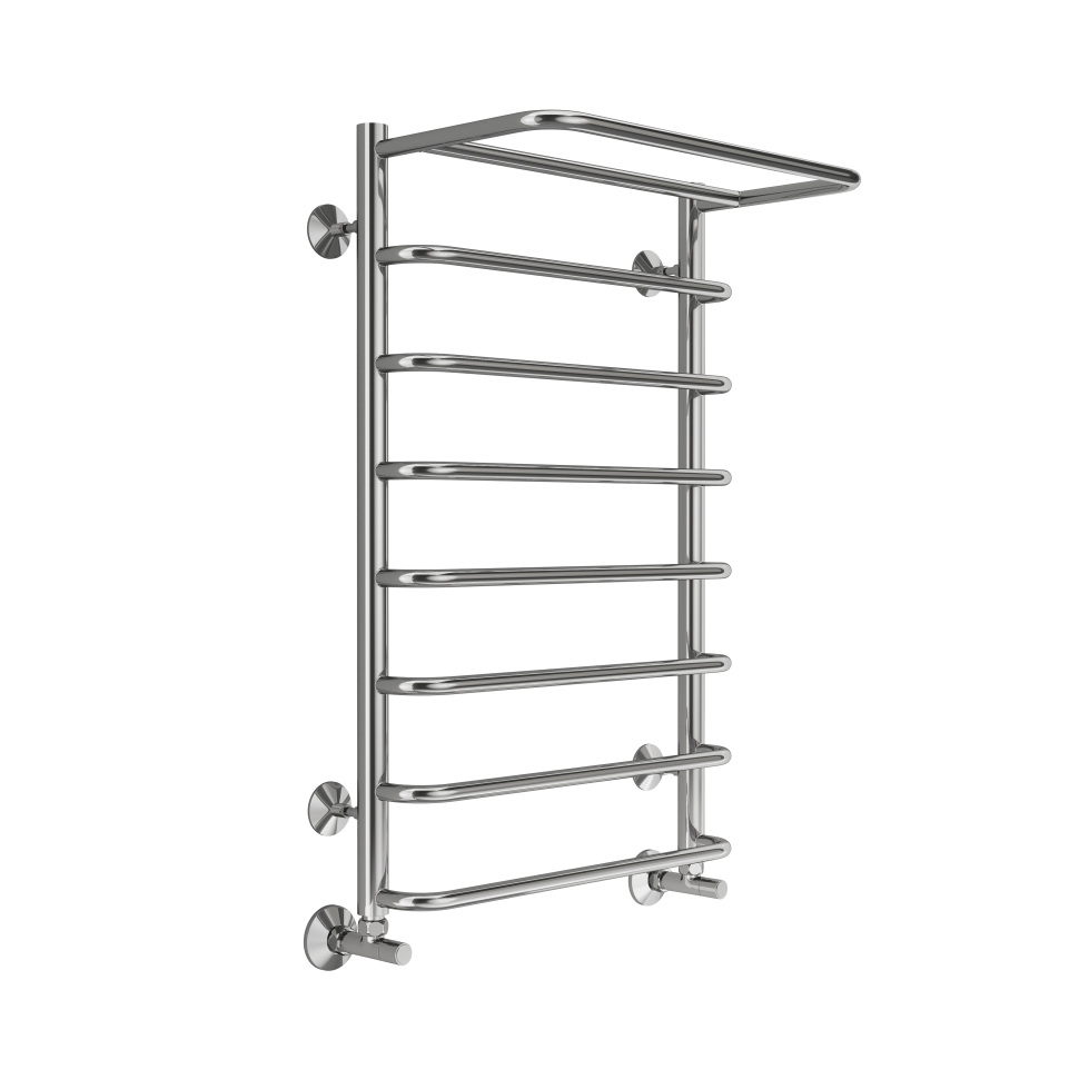 Компания «ТЕРМИНУС» предлагает водяной полотенцесушитель Полка. Устройство изготовлено из стали марки AISI 304L и подходит для автономного отопления или ГВС частных домов и коттеджей, централизованных систем многоквартирных домов.