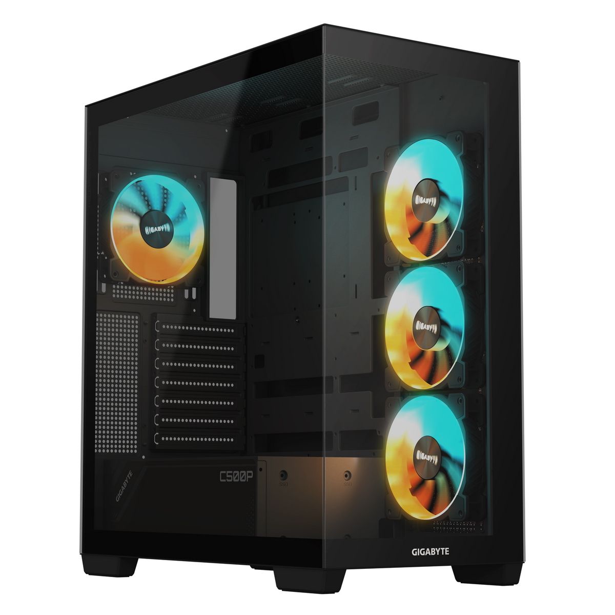 Три боковых (правая панель) и один тыловой 120мм вентилятор с ARGB подсветкой