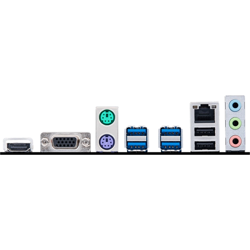 2 x PS/2, 2 x USB 2.0, 4 x USB 3.2 Gen1, VGA, HDMI, RJ-45