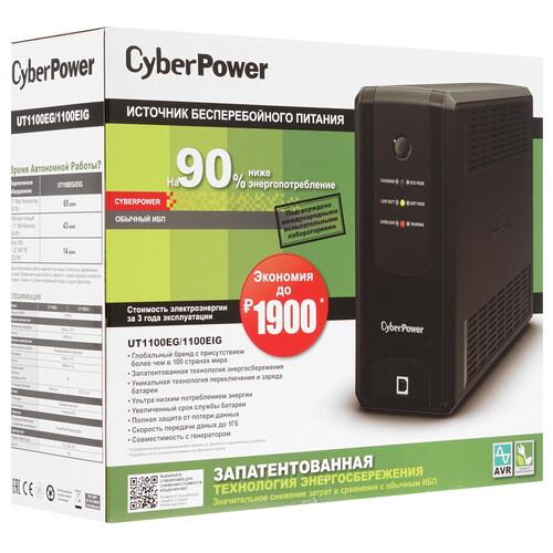 ИБП CyberPower UT1100EG обеспечивает на выходе модифицированную синусоиду. Устройство может функционировать в условиях нестабильного напряжения в сети. Минимально допустимое входное напряжение составляет 165 В, а максимально допустимое – 290 В. Поддерживается функция холодного старта. Это значит, что вы сможете включить ИБП (обеспечивая питание нагрузки в автономном режиме) в условиях отсутствия внешнего электропитания. Информация о текущем статусе работы модели выводится на светодиодные индикаторы.