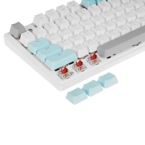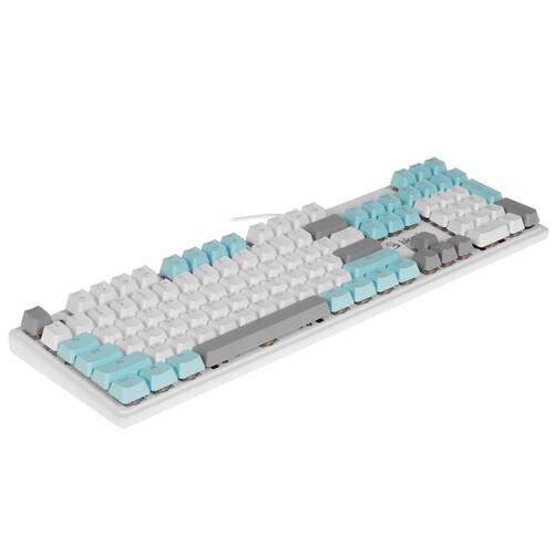 Полноразмерная проводная клавиатура A4Tech Bloody S515R имеет 104 клавиши с отдельным блоком цифр и линейкой Fn с различными функциями. Все клавиши разделены на 3 цвета по функциям: буквы и цифры белые, стрелки, пробел и некоторые другие – серые, а колонка Fn – голубая. Для удобства работы в темноте или при слабом искусственном освещении можно включить трехцветную RBG-подсветку.