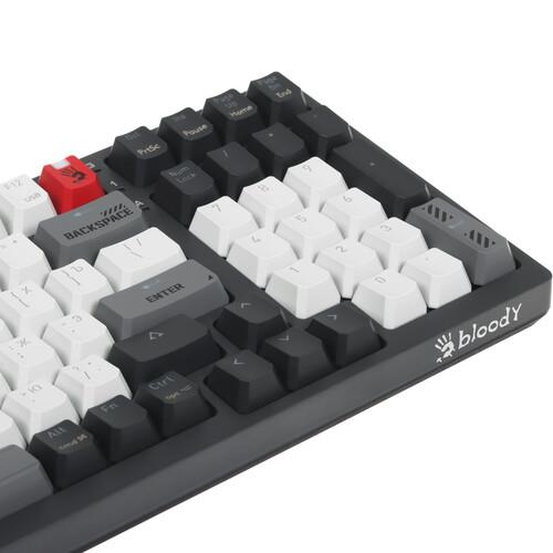 Клавиатура проводная + беспроводная A4Tech Bloody WS98 имеет кейкапы из пластика усиленной жесткости, устойчивого к потере яркости символов. Линейные переключатели Bloody BLMS RED уменьшают нагрузку на пальцы и отличаются плавным ходом. Обработать числовые данные можно с помощью цифрового блока.