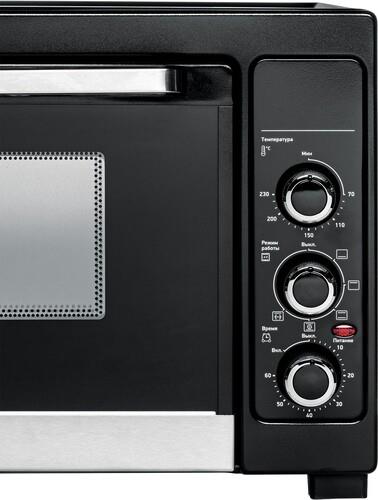 Для комфортной работы с печью в комплектацию входят: решетка для гриля, поддон для крошек, противень и ручка для его вынимания. Внутреннее покрытие духовки, изготовленное из нержавеющей стали, легко очищается и надолго сохраняет аккуратный внешний вид.
