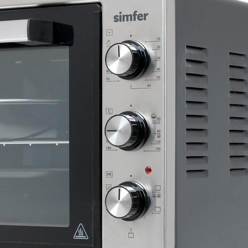 Электропечь Simfer М4270 представлена в компактном элегантном дизайне с серебристым корпусом. Система действует при наличии пяти режимов, а камера вмещает до 42 л. Яркая подсветка способствует удобному контролю над процессом готовки.
