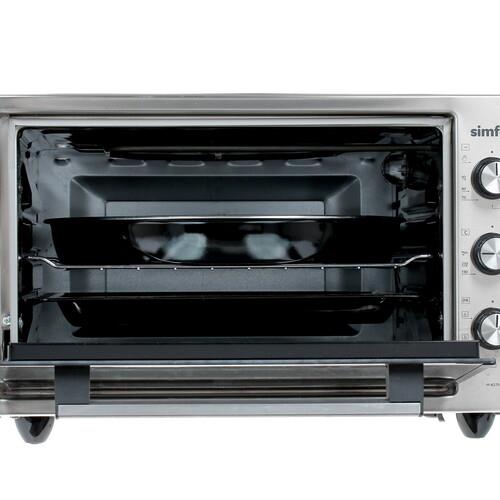 Оборудование Simfer М4270 дополнено конвекцией и таймером с функцией автоотключения. Удобная рукоятка с ненагревающимся покрытием защитит вас от ожогов. Прибор поставляется с решеткой, а также круглым и вместительным глубоким противнями. Компактные габариты данной печи позволят установить ее даже на небольшом кухонном столе или отдельной полке.