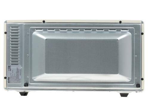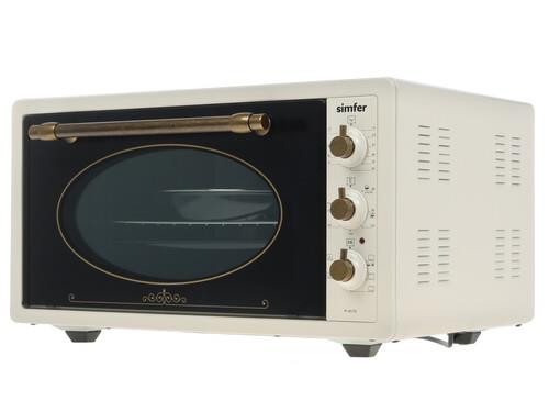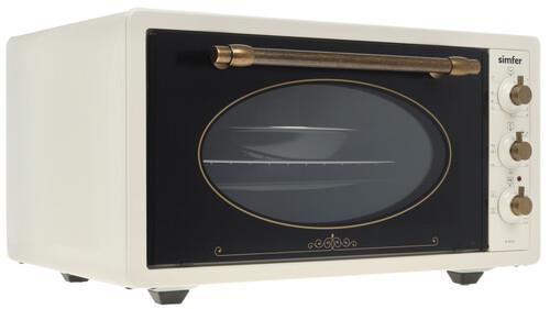 Электропечь Simfer M4579 отличается компактностью, при этом способна заменить полноценную духовку с грилем. Габариты представленной модели составляют 59х33х47 см. Корпус устройства оформлен в бежевой расцветке и выполнен в ретро-стилистике. Такая печь станет оптимальным вариантом для небольшой квартиры или дачи. Мощность модели составляет 1400 Вт.