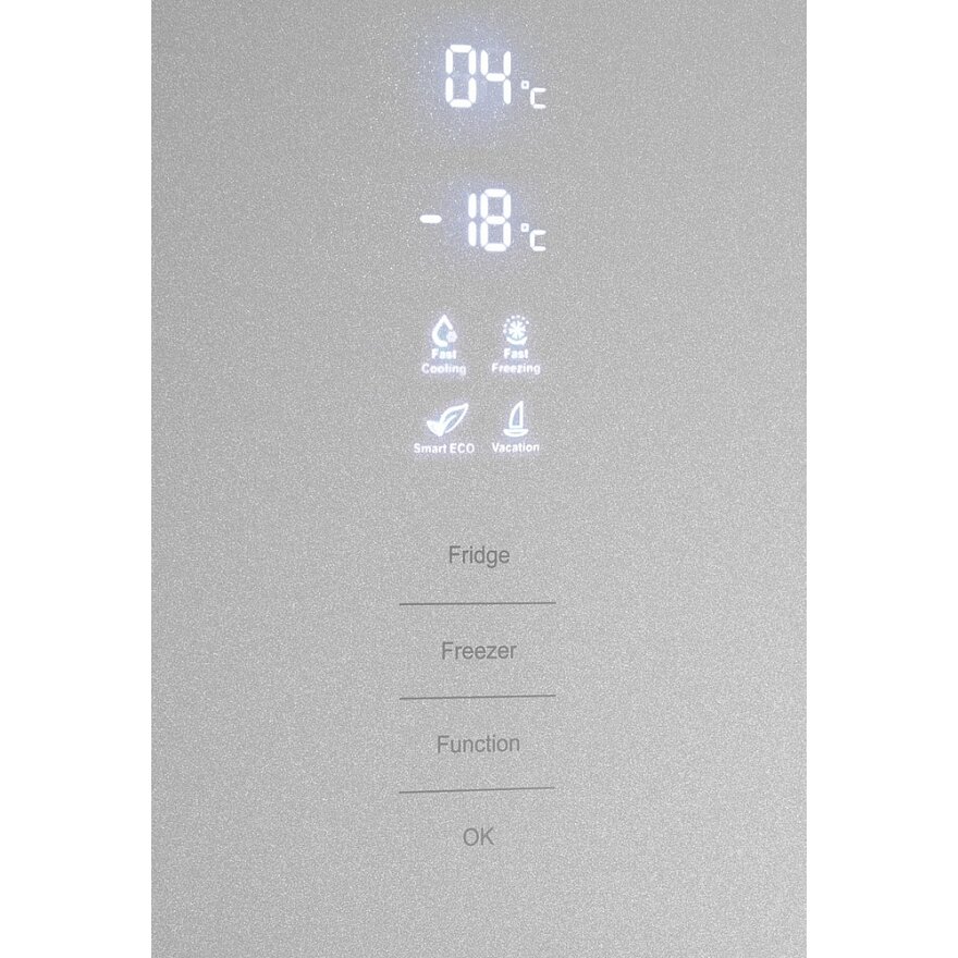 Холодильник Maunfeld MFF185NFS это двухкамерный прибор, выполненный в белом цвете. Классический дизайн подойдет к абсолютно любому кухонному интерьеру и дополнит его. Модель имеет стандартные габариты, поэтому будет удобна для встраивания. Высота устройства — 185,5 см, ширина — 59,5 см, глубина — 64,5 см. В его основу положен надежный и экономичный инверторный компрессор, соответствующий классу А+. Классификация по уровню энергопотребления дает объективное представление о том, насколько эффективно прибор расходует данный ресурс. Холодильник Maunfeld MFF185NFS оборудован дисплеем с цифровой индикацией температуры и настроек. Управление техникой осуществляется с помощью сенсорных переключателей. Помимо этого, светодиодная подсветка ярко освещает внутреннее пространство камеры и отличается долговечностью.