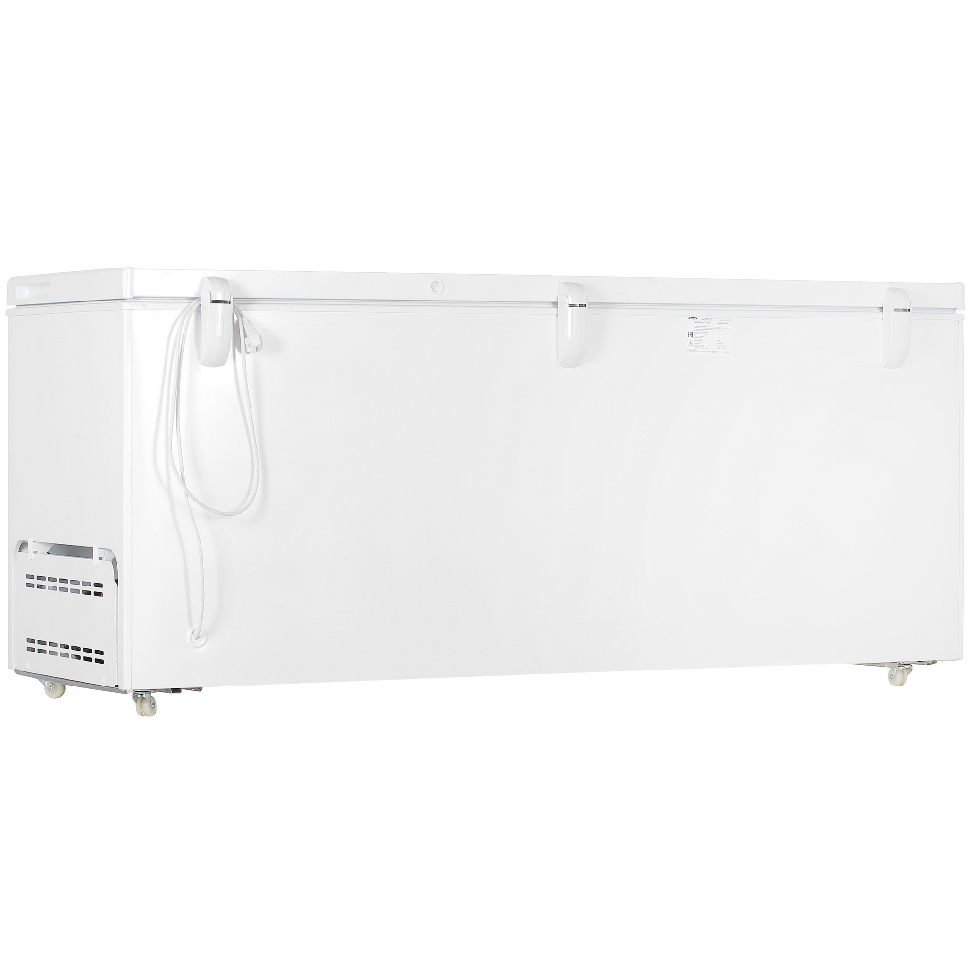 Несмотря на свои внушительные габариты (ширина 179 см), ларь спроектирован с заботой о пользователе. Встроенные в крышку ручки не только выглядят эстетично, но и экономят полезное пространство, исключая случайные зацепы. Для легкого перемещения прибора предусмотрены четыре надежных ролика, которые позволяют без труда передвинуть заполненный ларь во время уборки. Внутреннее пространство дополнено двумя подвесными корзинами, помогающими удобно рассортировать самые востребованные продукты.