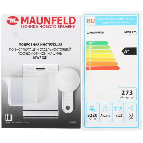 Посудомоечная машина MAUNFELD MWF12S выполнена в белом корпусе стандартного размера 84.5x59.8x60 см. Она содержит две корзины и рассчитана на загрузку 12 комплектов посуды. Для размещения большой посуды скобы можно складывать, а также регулировать среднюю корзину по высоте. Аппарат при полной загрузке расходует 11.5 л воды. Безопасную эксплуатацию обеспечивает полная защита от протечек, которая реализуется через корпус и шланг.