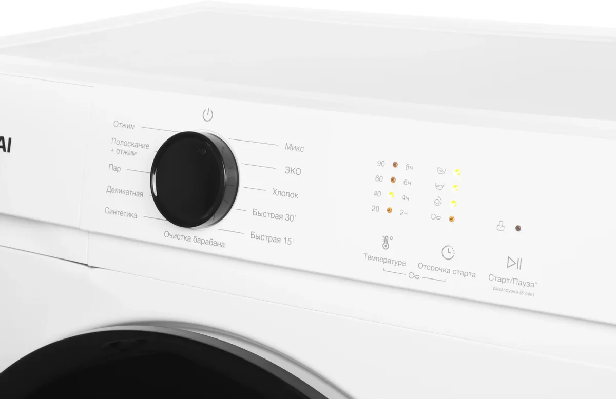 Хлопок, Синтетика, Смешанные ткани, Деликатная, Быстрая, Эко, Шерсть, Детская, Спортивная, Рубашки, Темные вещи, Полоскание, Отжим, Предварительная стирка, Антиаллергенная