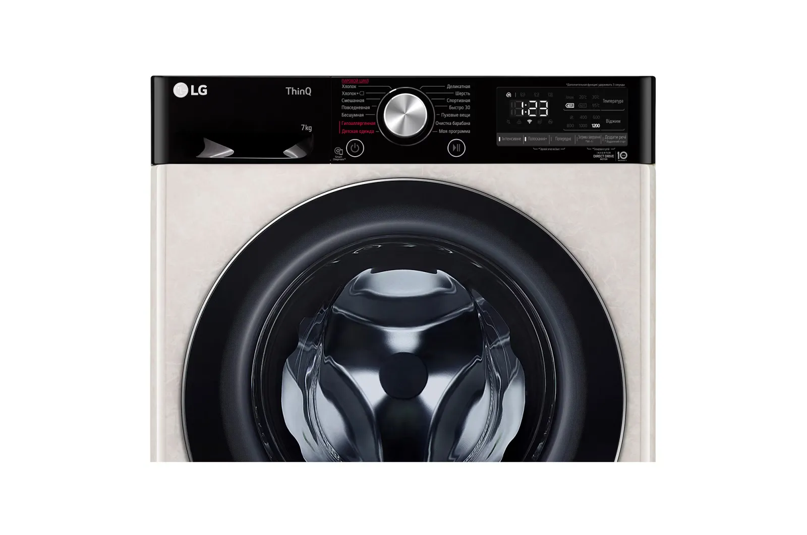 Инверторный двигатель Direct Drive крепится непосредственно к барабану, что обеспечивает более тихую работу, уменьшение вибраций и повышенную долговечность механизма. Эта технология делает стирку на 25% тише по сравнению с обычными моделями.