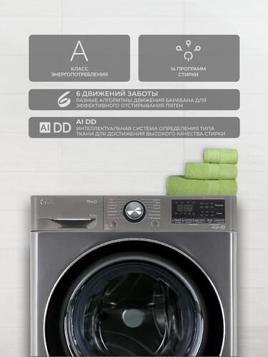 Стиральная машина LG F2V9GW9P имеет высокую производительность и рассчитана на одновременную загрузку до 8.5 кг. Модель черного цвета с узким корпусом подходит для установки даже в небольшой ванной или кухне и позволяет сэкономить пространство. Устройство обеспечивает бережную и качественную очистку, удаляет пятна и не повреждает волокна. Интеллектуальная система определяет свойства тканей и подбирает оптимальный вариант ухода. Технология TurboWash 360 обеспечивает полный цикл стирки всего за 39 мин, что позволяет сэкономить время и коммунальные ресурсы.