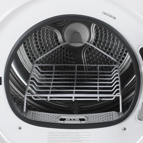 Сушильная машина Haier HD90-A2959 имеет 12 программ для ухода за вещами разных типов, есть отдельная полка для сушки обуви, шапок и других вещей. По истечении программы устройство издает звуковой сигнал. Настройки можно осуществлять с помощью кнопок и поворотного переключателя, что позволяет равномерно высушить вещи без потери формы и деформации ткани.