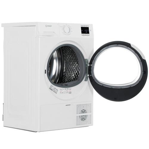 Сушильная машина Indesit IAS3725 с тепловым насосом вмещает 7 кг мокрого белья. Есть возможность подключения устройства к сливу. Модель умеет определять влажность вещей, сушить их при пониженной температуре. Вы можете активировать отсрочку старта и выбирать программу в зависимости от типа ткани.