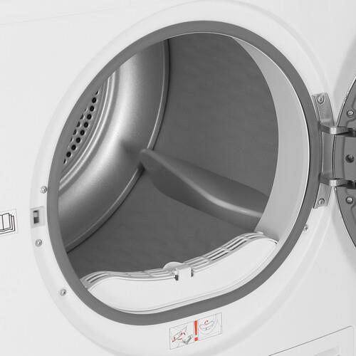 Встроенный датчик влажности определяет влажность белья, позволяя электронике настраивать время сушки. Это также зависит от количества белья в барабане. Блокировка панели управления не допустит случайного включения машины и защитит от изменения настроек.