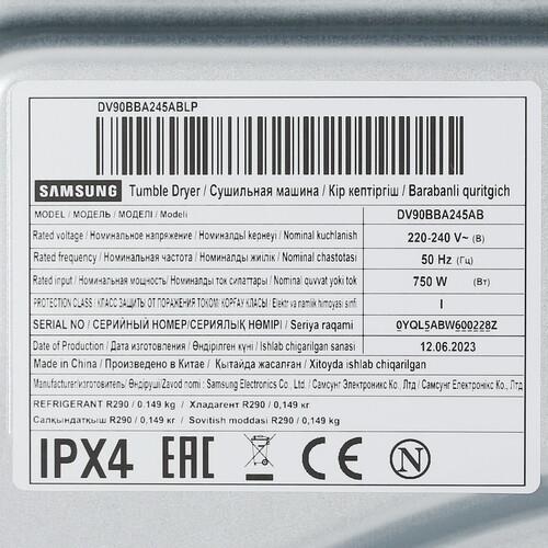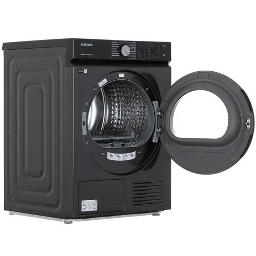 Сушильная машина Samsung DV90BBA245ABLP представлена в черном корпусе с дисплеем, сенсорными кнопками и поворотными рычагами. Устройство вмещает до 9 кг вещей и выполняет конденсационную сушку со сбором излишков влаги в отдельный контейнер. Вы можете подключать машину напрямую к сливу. Тепловой насос улучшает эффективность сушки и ускоряет этот процесс.