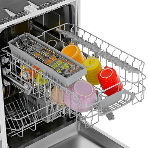 Встраиваемая посудомоечная машина Bosch SPV2IKX10E – функциональная модель с вместимостью 9 комплектов, которую можно разместить даже на небольшой кухне благодаря 45-сантиметровой толщине. Технология Home Connect позволит удаленно управлять прибором и отслеживать его состояние при помощи смартфона. В число программ входит режим Extra Dry, обеспечивающий эффективную сушку стеклянной и пластиковой посуды. После запуска устройства на полу отображается луч, по цвету которого можно понять его текущее рабочее состояние.