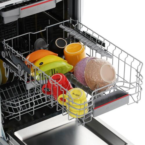 Среди автоматических программ в Bosch SPV4HMX55Q есть режимы дополнительного полоскания и интенсивной сушки. Вы можете выставлять таймер отсрочки до 24 часов для автоматического запуска ПММ в удобное время. Есть возможность удаленного управления через мобильное приложение или голосового помощника.
