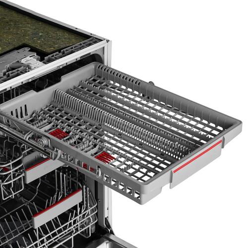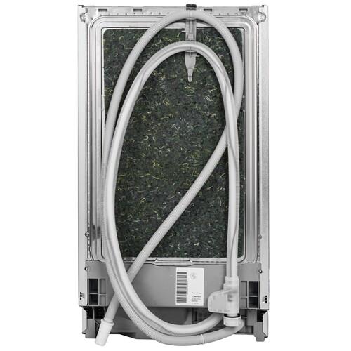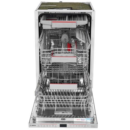 Встраиваемая посудомоечная машина Bosch SPV6EMX70Q серебристого цвета вмещает в себя до 10 комплектов посуды и подойдет для семьи из 3-4 человек. Она потребляет всего 9.5 литров воды за цикл и позволяет экономить расход по сравнению с ручной мойкой. Модель использует конденсационную сушку посуды, когда вода испаряется самостоятельно и собирается в специальный поддон.