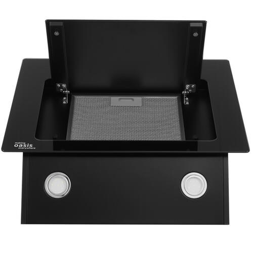 Вытяжка Оasis NA-60B работает в режимах отвода и рециркуляции. Металлический съемный фильтр задерживает жировые брызги. Антивозвратный клапан устраняет проникновение воздуха через вентиляционное отверстие. Для яркого освещения зоны приготовления с экономичным энергопотреблением установлены 2 светодиодные лампы мощностью по 1 Вт.