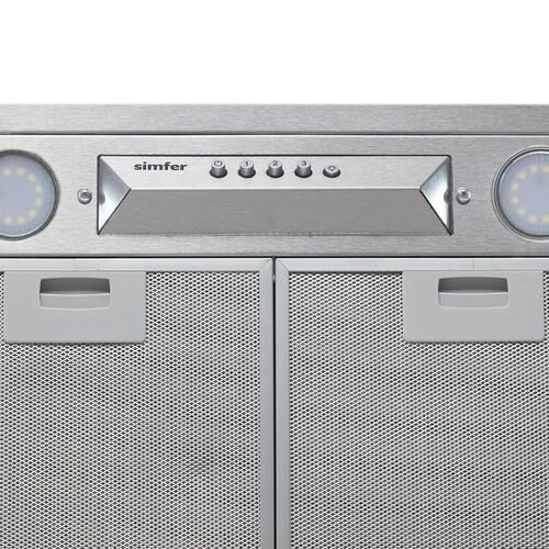 Вытяжка полновстраиваемая Simfer 8672SM серого цвета способна пропускать через себя до 650 м³/ч воздуха. Модель имеет режим отвода воздуха и циркуляции. Светодиодная лампа освещает варочную поверхность в темное время суток. Жировой фильтр останавливает капли жира и не допускает их попадание в вытяжку. Антивозвратный клапан не позволяет воздуху проникать в сторону вытяжки. Дополнительно можно установить угольный фильтр.