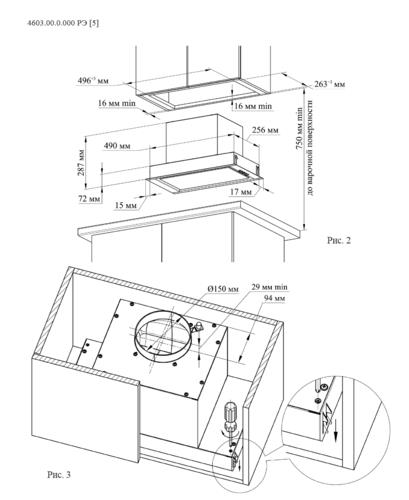 Мин. высота установки над электрической плитой
