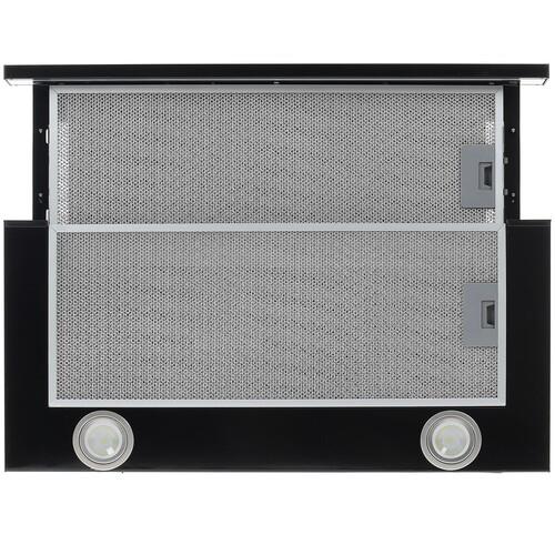 Вытяжка полновстраиваемая Haier HVX-T671B в изящном черном корпусе из металла займет на кухне не много места, так как она имеет выдвижную конструкцию. В случае, когда прибор не используется, его можно задвинуть, а тогда, когда на кухне готовится еда, его необходимо выдвинуть. Производительное устройство с мотором мощностью 120 Вт работает с интенсивностью до 700 м³/ч в режимах отвода и вентиляции воздуха. Жировой фильтр препятствует попаданию внутрь зонта вытяжки полновстраиваемой Haier HVX-T671B испарений. При необходимости можно дополнить прибор угольным фильтром. Благодаря 2 светодиодным лампам мощностью 1 Вт над рабочей поверхностью для приготовления пищи можно создать неяркое освещение.