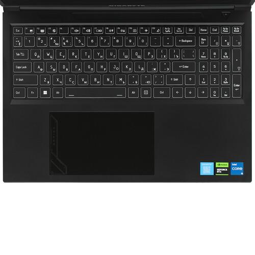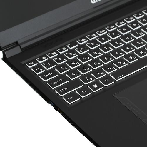 Ноутбук GIGABYTE G6 MF облачен в классический черный корпус из пластика. Глядя на него, сложно догадаться, что это производительное игровое устройство. Клавиатура оснащена цифровым блоком и RGB-подсветкой.