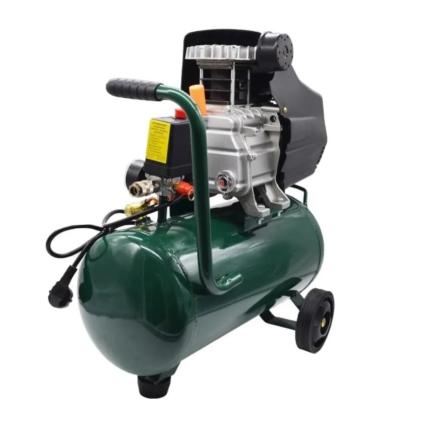 Одноступенчатый поршневой масляный коаксиальный компрессор с прямым приводом производительностью 240 л/мин, мощностью 1,6 кВт и ресивером 24 - может использоваться с широким спектром аксессуаров и пневмоинструмента напряжение питания 220В - номинальная мощность 1.6кВт - производительность 240л/мин - объем ресивера 24л - максимальное давление 8бар - производительность 240л/мин - тип компрессора поршневой - тип смазки масляный