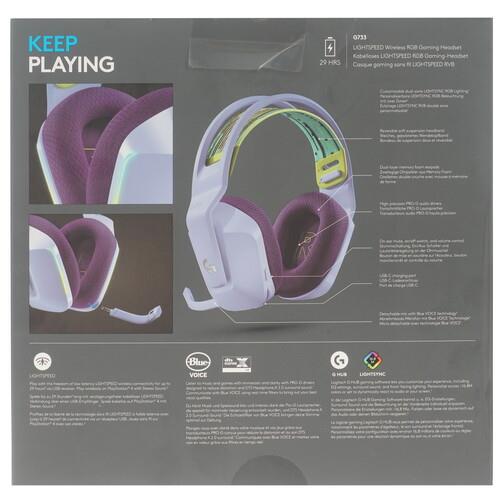 Радиочастотная гарнитура Logitech G733 LIGHTSPEED приковывает к себе взгляды футуристичным дизайном с выразительным фиолетово-сиреневым цветом корпуса и разноцветной подсветкой. Удобство при использовании обеспечивает беспроводное подключение посредством радиоканала, мягкие охватывающие амбушюры и регулируемое оголовье. Основным преимуществом этой модели стала поддержка объемного звука 7.1 Virtual для возможности не только услышать каждый шорох в игре, но и точно определить направление, с которого он доносится.