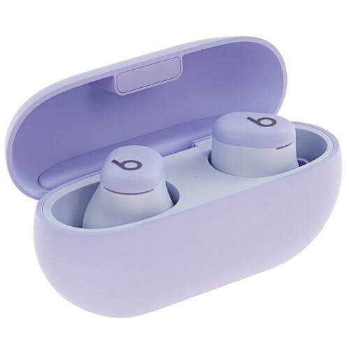 Наушники TWS Beats Solo Buds представлены в фиолетовом цвете. Они комфортно располагаются в слуховом канале благодаря эргономичной форме и сменным силиконовым вкладышам. Динамические излучатели формируют насыщенный чистый звук в диапазоне 20-20000 Гц. За точную передачу голоса без искажения во время разговоров отвечает микрофон с функцией шумоподавления.