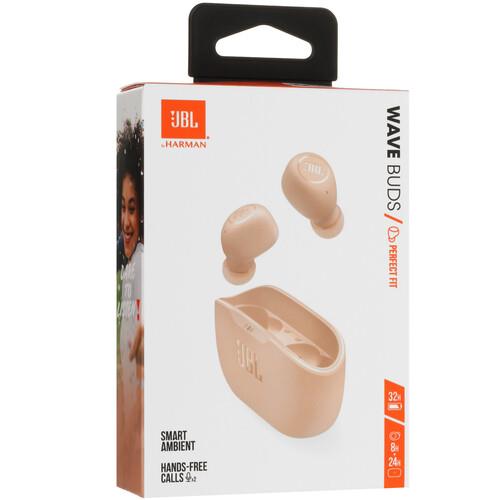 Наушники TWS JBL WAVE BUDS выполнены в бежевом цвете и поставляются в кейсе с магнитной фиксацией. Закрытая акустическая система с 8-мм драйверами обеспечивает высокую точность воспроизведения деталей. Технология JBL Deep Bass насыщает звук выразительным басом. Интегрированный микрофон передает чистый голос в процессе разговора.