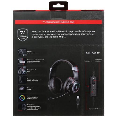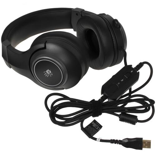 Особенность наушников во встроенной разноцветной подсветке, подчеркивающей атмосферу игрового процесса. Для регулировки громкости предусмотрено специальное колесико, также для управления используются кнопки активации микрофона и подсветки. Наушники поддерживают проводное подключение при помощи кабеля длиной 2 м.