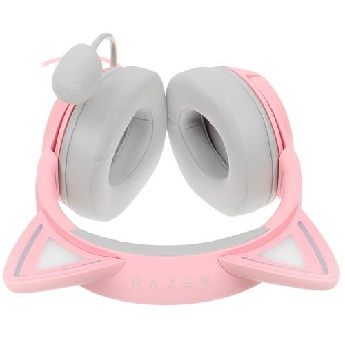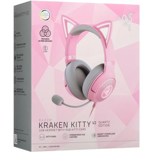 Проводные наушники Razer Kraken Kitty V2 созданы для геймеров и любителей качественного звука. Они имеют розовый корпус с ушками котика, мягкие амбушюры и регулируемое оголовье для комфортной посадки на голове.